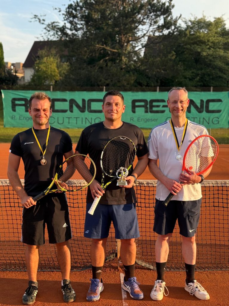 Auch bei den Herren blieb es bis zum Schluss spannend. Nach sehenswerten Duellen standen sich im Endspiel Oliver Hartel und Bernd Müller gegenüber. Mit starkem Auftritt gelang es Oliver Hartel, das Finale für sich zu entscheiden und den Vereinsmeistertitel zu holen. Den dritten Platz belegte Marco Cramer, der sich im kleinen Finale durchsetzen konnte und damit ebenfalls einen Podestplatz erreichte.